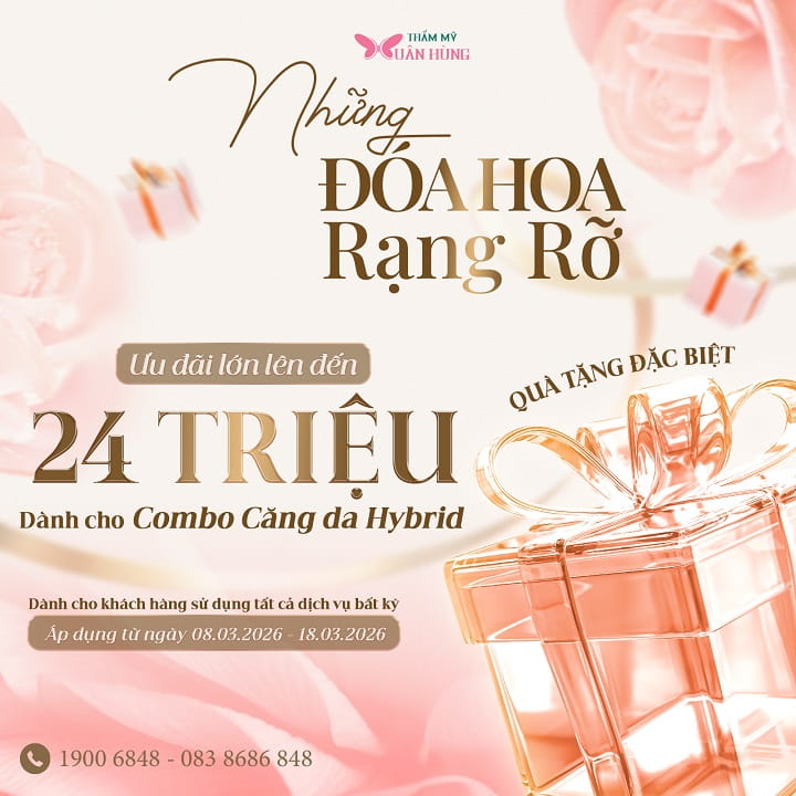 Nhân dịp Quốc tế Phụ nữ 8/3, phái đẹp không chỉ xứng đáng nhận được những bó hoa tươi thắm mà còn xứng đáng được chăm sóc và tỏa sáng theo cách riêng của mình, Trung tâm Thẩm mỹ Xuân Hùng mang đến chương trình ưu đãi đặc biệt với chủ đề “Những đóa hoa rạng rỡ” – nơi mỗi khách hàng đều có thể trở thành phiên bản rạng ngời nhất của chính mình.